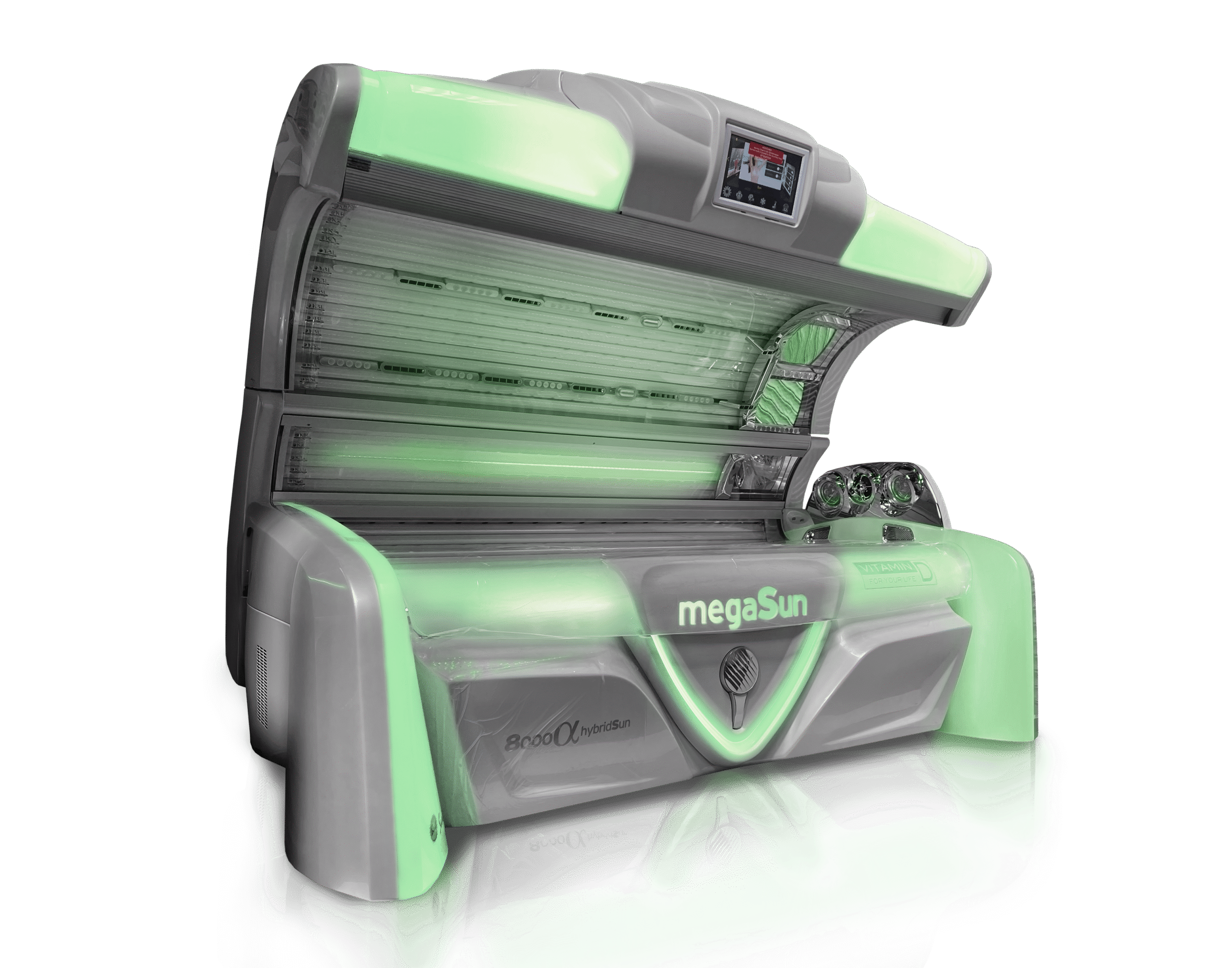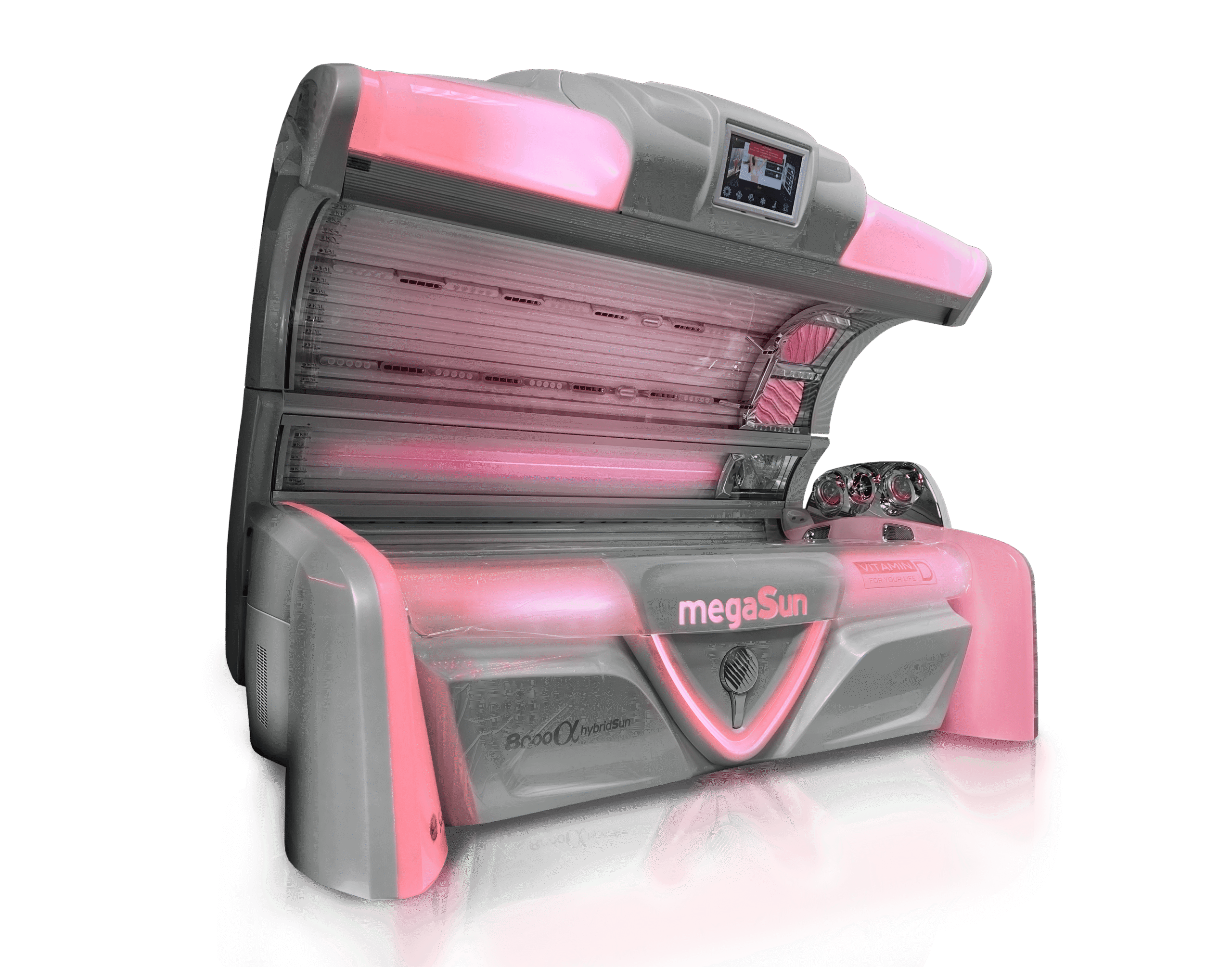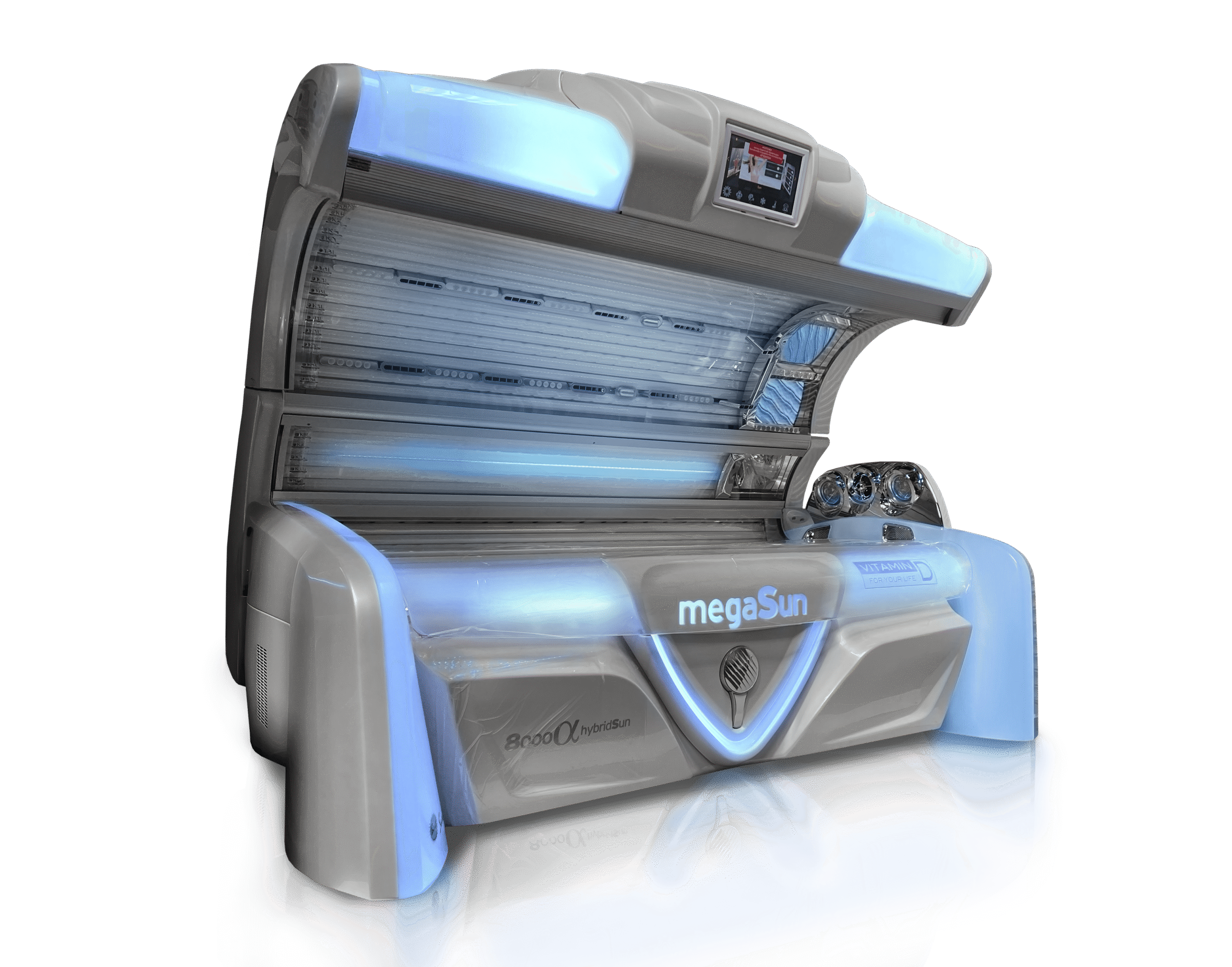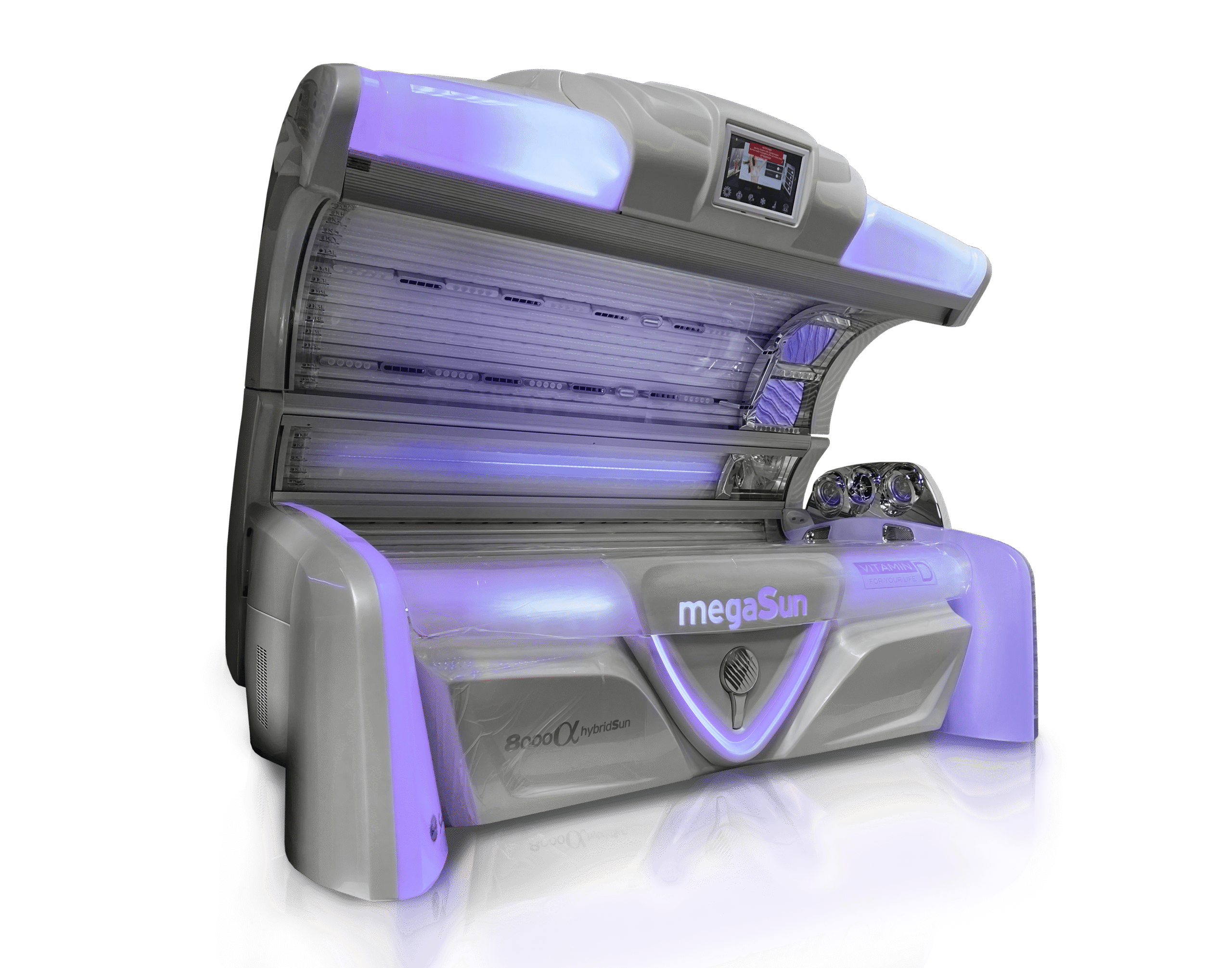 The megaSun 8000 Alpha Deluxe White Carbon is a premium commercial tanning bed created for salons that want luxury, performance, and modern design. With its futuristic White Carbon look, it is one of the most advanced tanning machines on the market today.