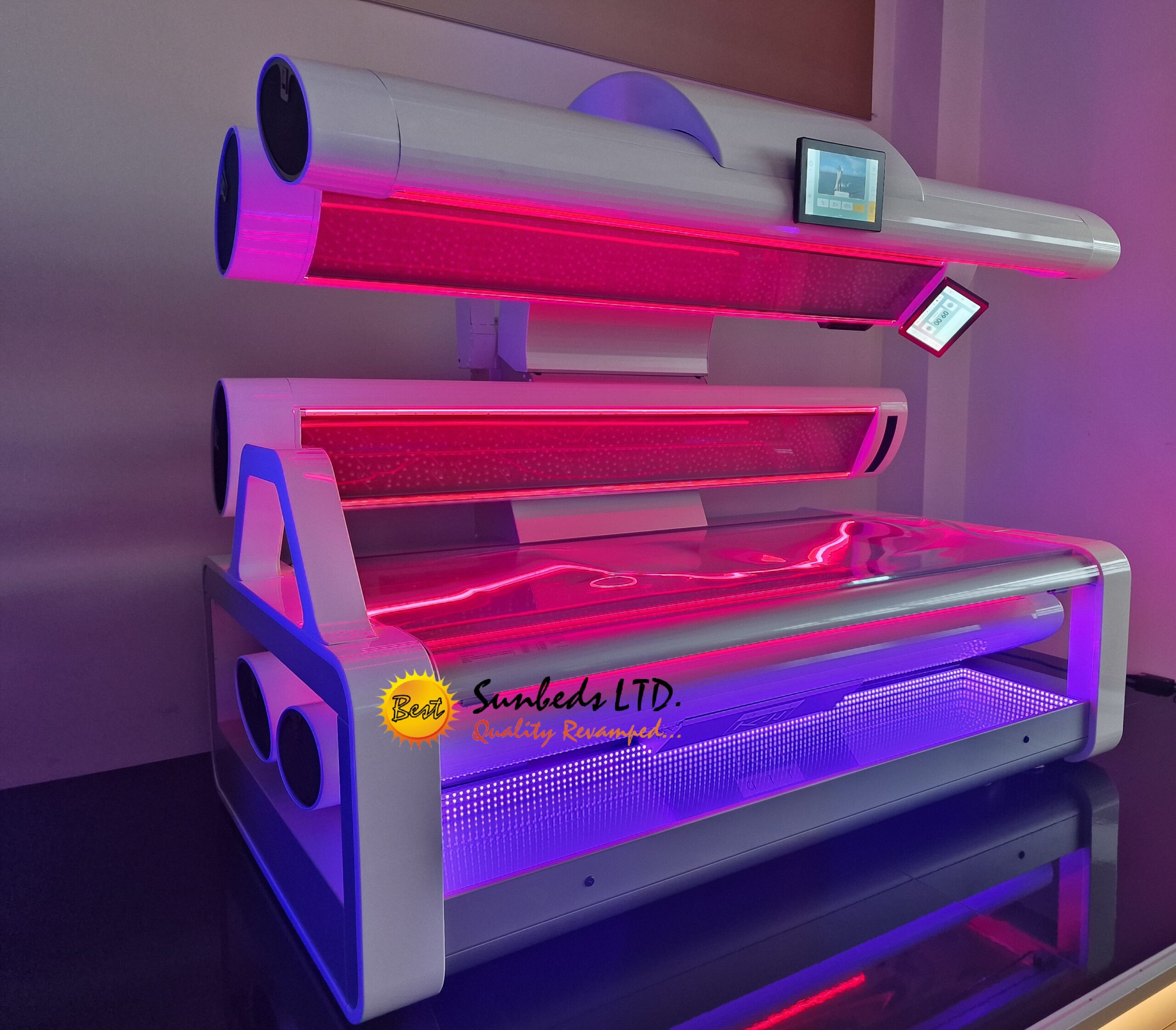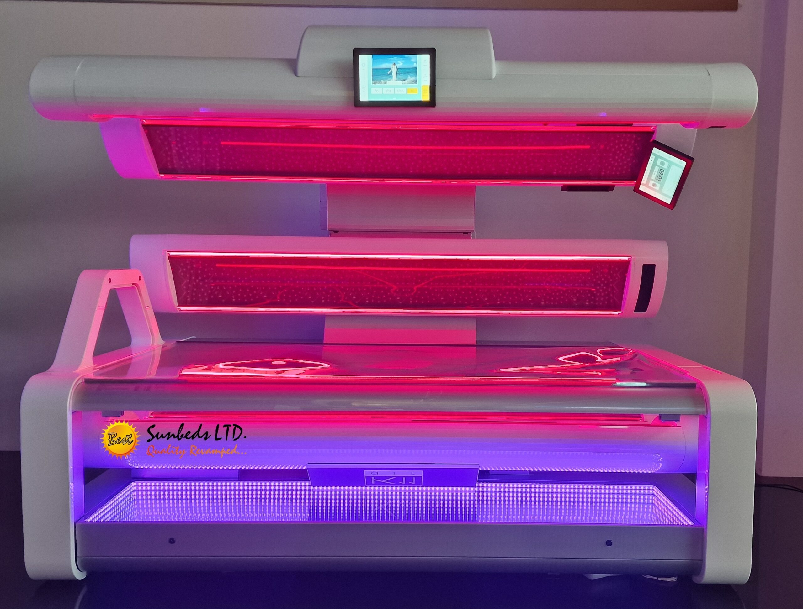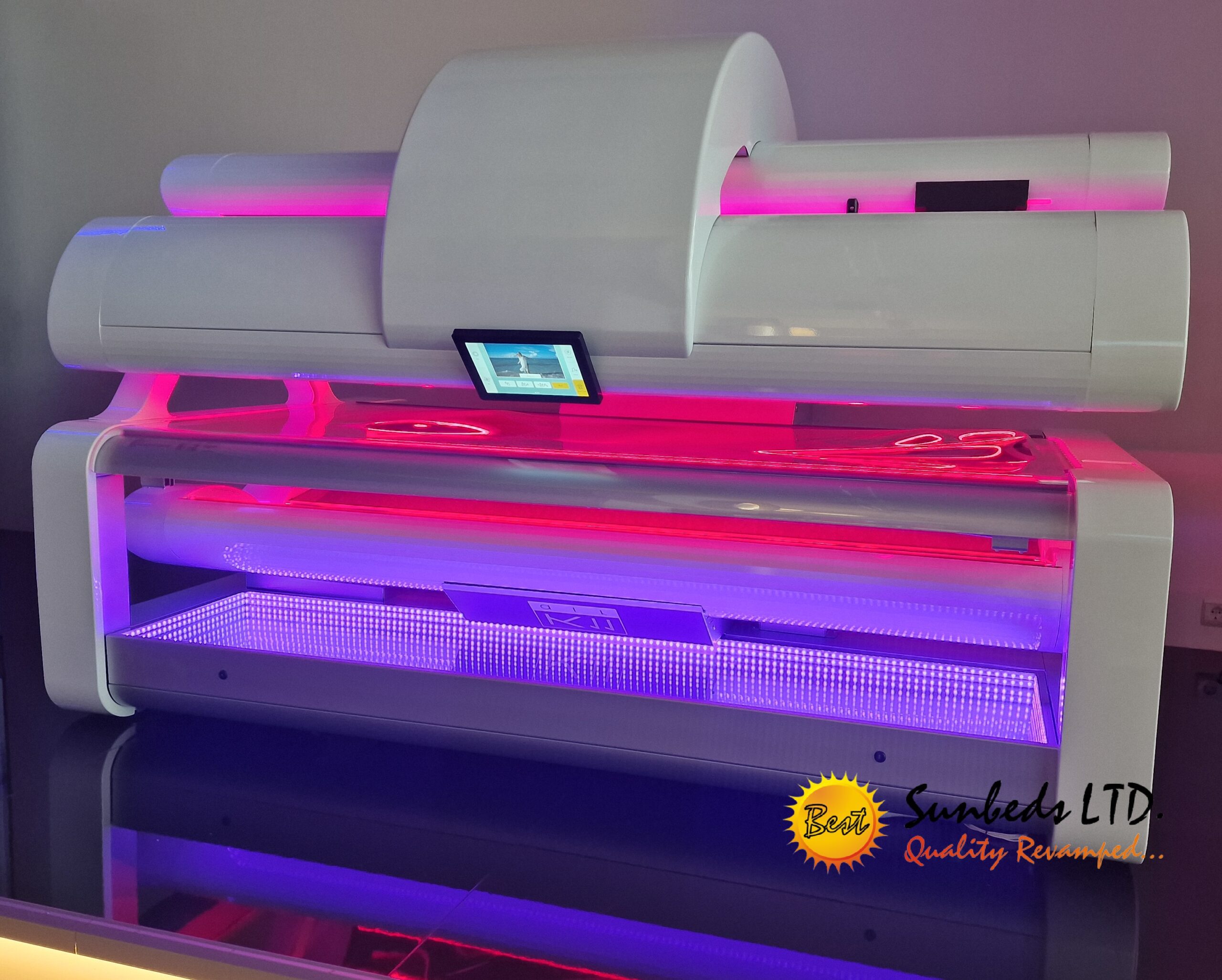 The MEGASUN K11 AIR is a groundbreaking sunbed, fully equipped with LED technology (blue, yellow, and red) to tan the entire body, face, and arms with precision. This innovative system offers endless possibilities for customizing tanning sessions, ensuring an optimal and personalized experience for each user.
