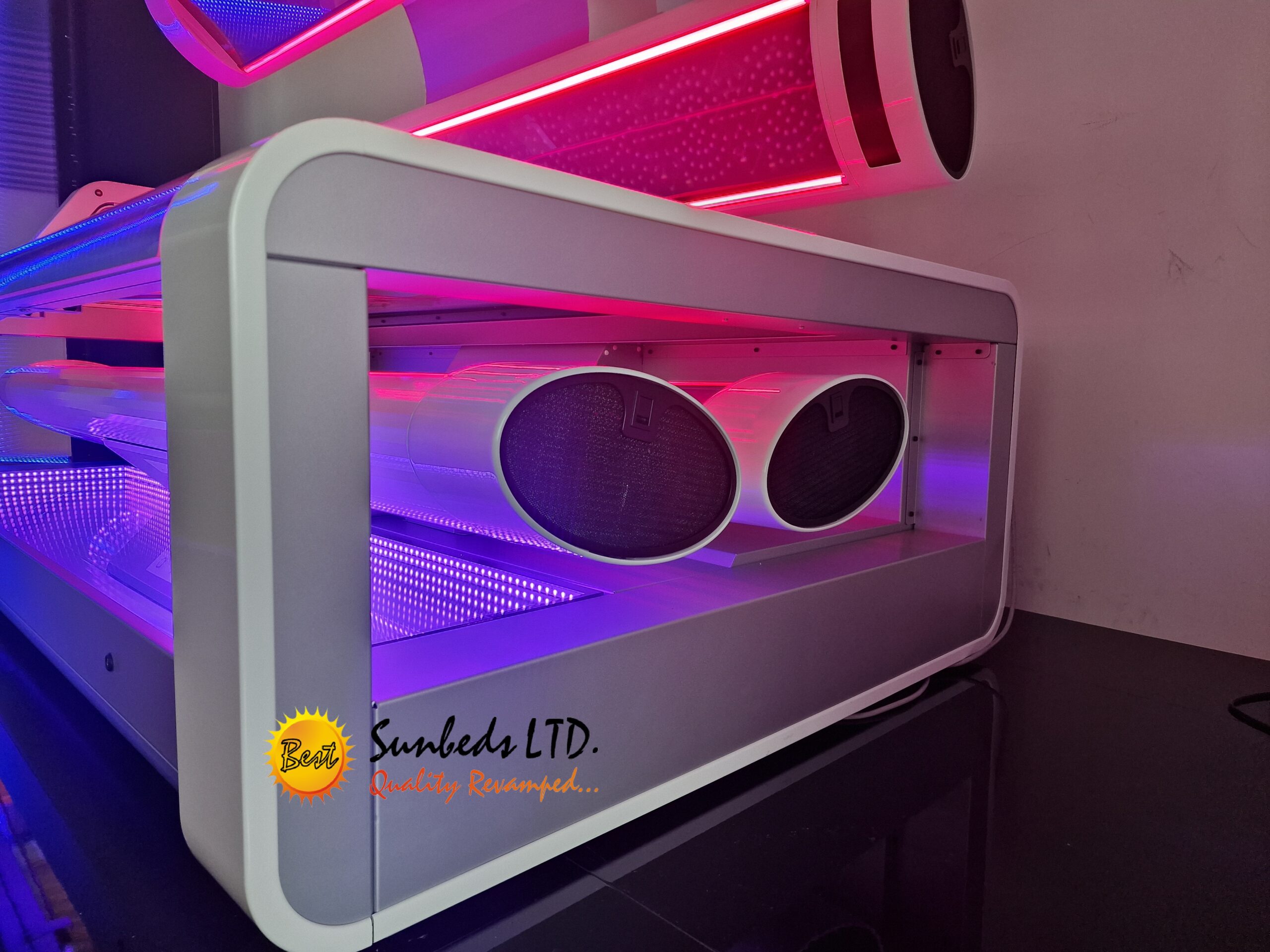Personalized Tanning Experience – Thanks to the use of LEDs, this sunbed offers precise control over the tanning process. The ability to personalize each session for the body, face, and arms ensures that every client gets the best possible results. Combined with additional features like ergonomic comfort adjustments, built-in ventilation systems, and cooling options, the K11 AIR guarantees a relaxing and comfortable tanning session.