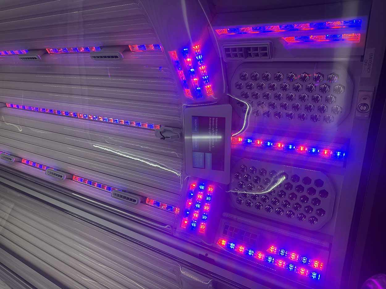Red LEDs care for the skin, stimulate oxygen production, and enhance the intensity of the tan.