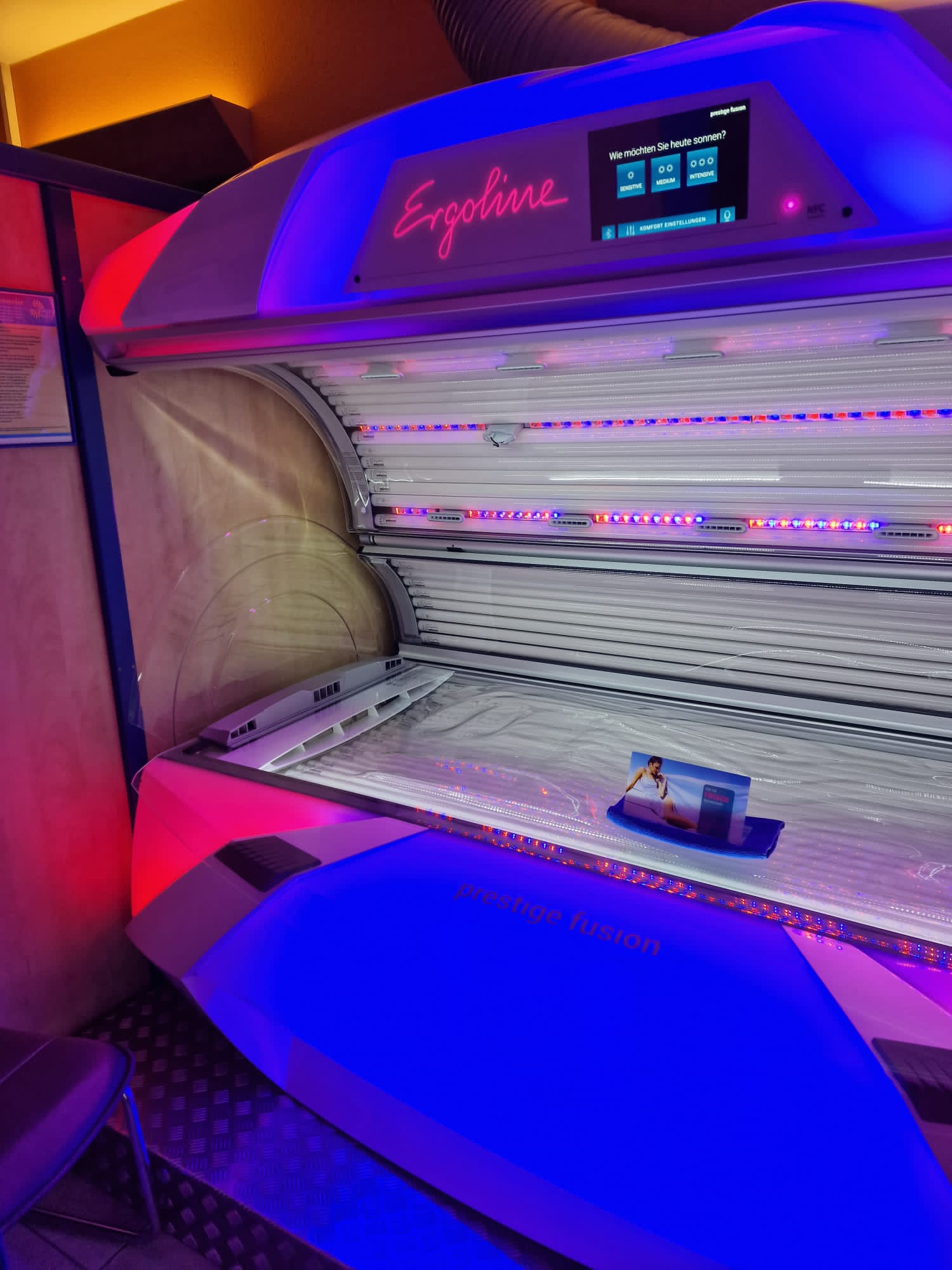 The Ergoline Prestige Fusion Spectra is a next-generation commercial tanning bed that sets a new standard for professional salons. Designed to deliver a deep, even, and skin-friendly tan, this model combines Fusion Light Technology, UVA LEDs, and luxurious comfort features – giving your clients an exceptional tanning experience from the very first session.