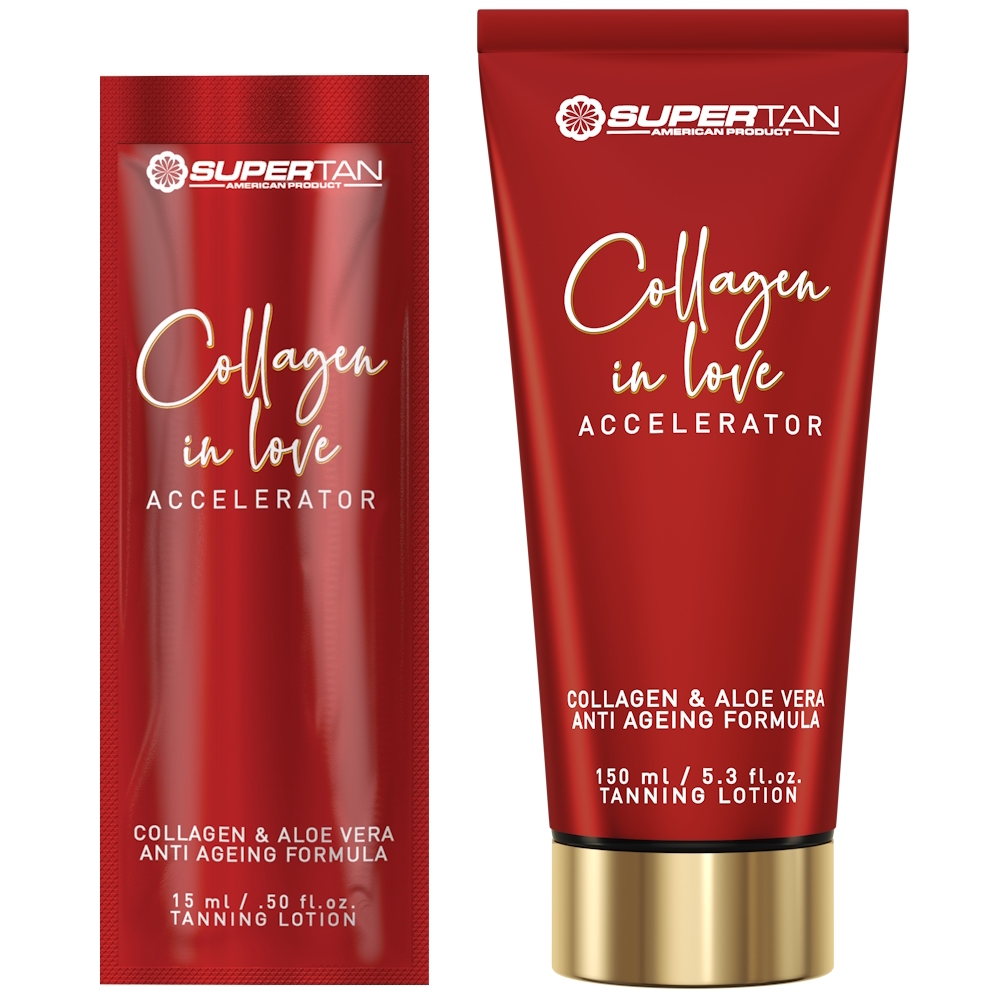 SuperTan Collagen in Love is a tanning accelerator that combines collagen with a powerful formula to hydrate and smooth your skin, leaving it soft and glowing. With no bronzers or tingling, it gently enhances your tan while protecting your skin from dryness. The lightweight texture absorbs quickly, and the enchanting fragrance adds a luxurious touch. Ideal for daily use, it extends the life of your tan and keeps your skin moisturized and radiant. Treat your skin to hydration and a flawless glow with SuperTan Collagen in Love.