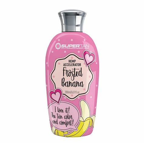 SuperTan Frosted Banana is a hemp-based tanning accelerator that combines powerful ingredients like tyrosine, copper, and riboflavin with intense hydration from aloe vera, hemp oil, cocoa butter, and safflower oil. This lightweight gel deeply moisturizes while boosting your tan, leaving skin smooth, radiant, and healthy. Enriched with antioxidant-rich vitamin E, it helps protect and rejuvenate skin. With a delicious banana fragrance, it’s perfect for sunbed use, improving skin texture, preventing dryness, and promoting a glowing, long-lasting tan—without parabens.