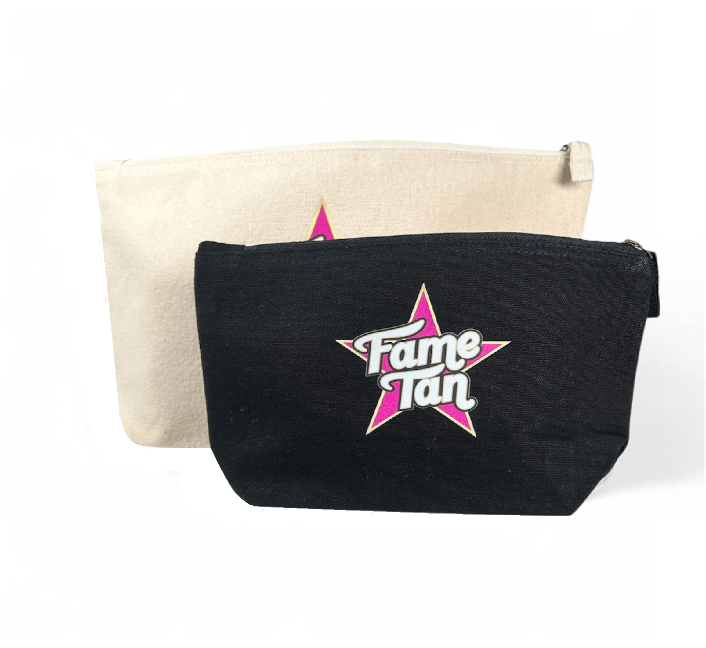 The Fame Tan Cotton Cosmetic Bag is a must-have accessory for every tanning lover. Made from soft, durable cotton, this cosmetic pouch is perfect for keeping your tanning essentials organised, clean and ready to use.
