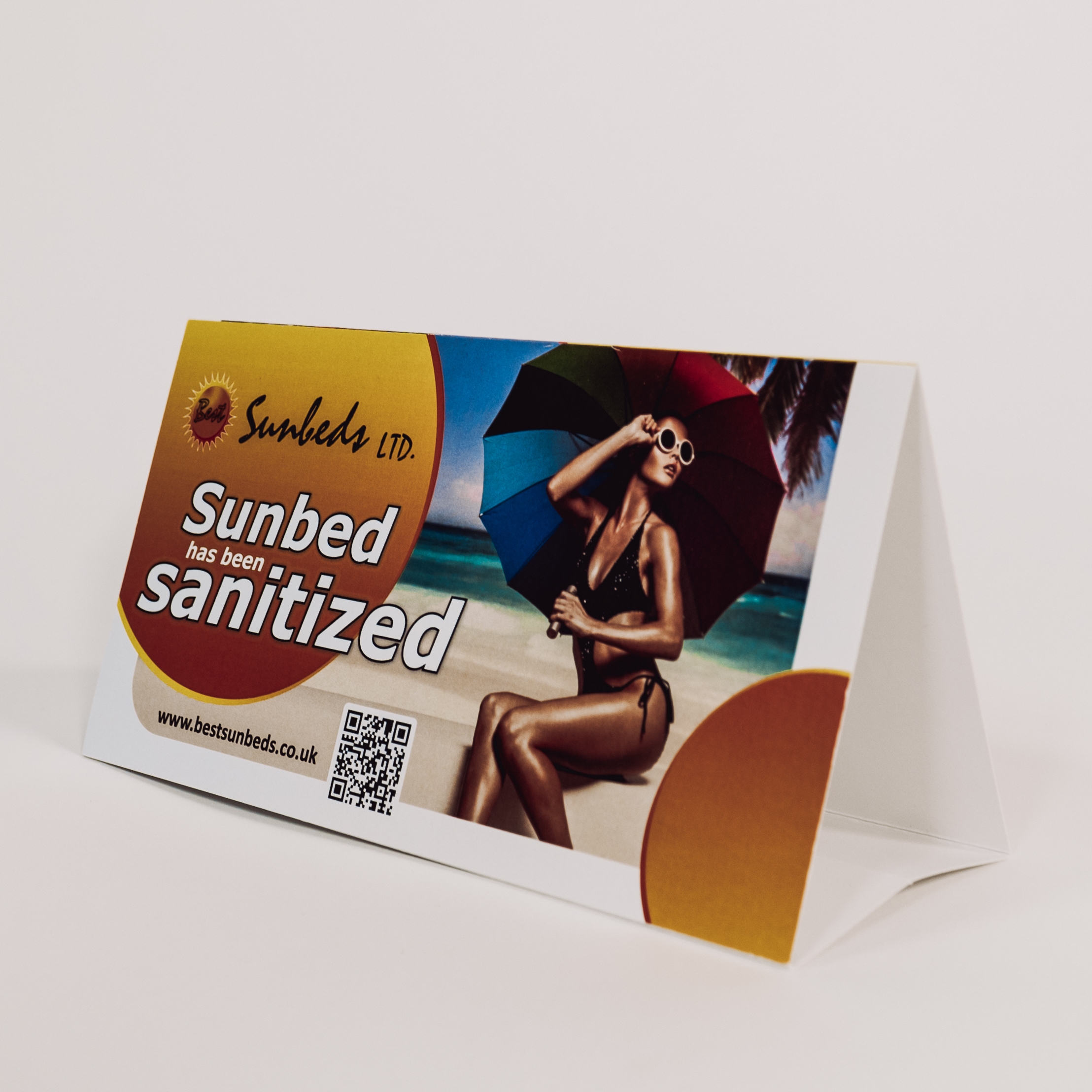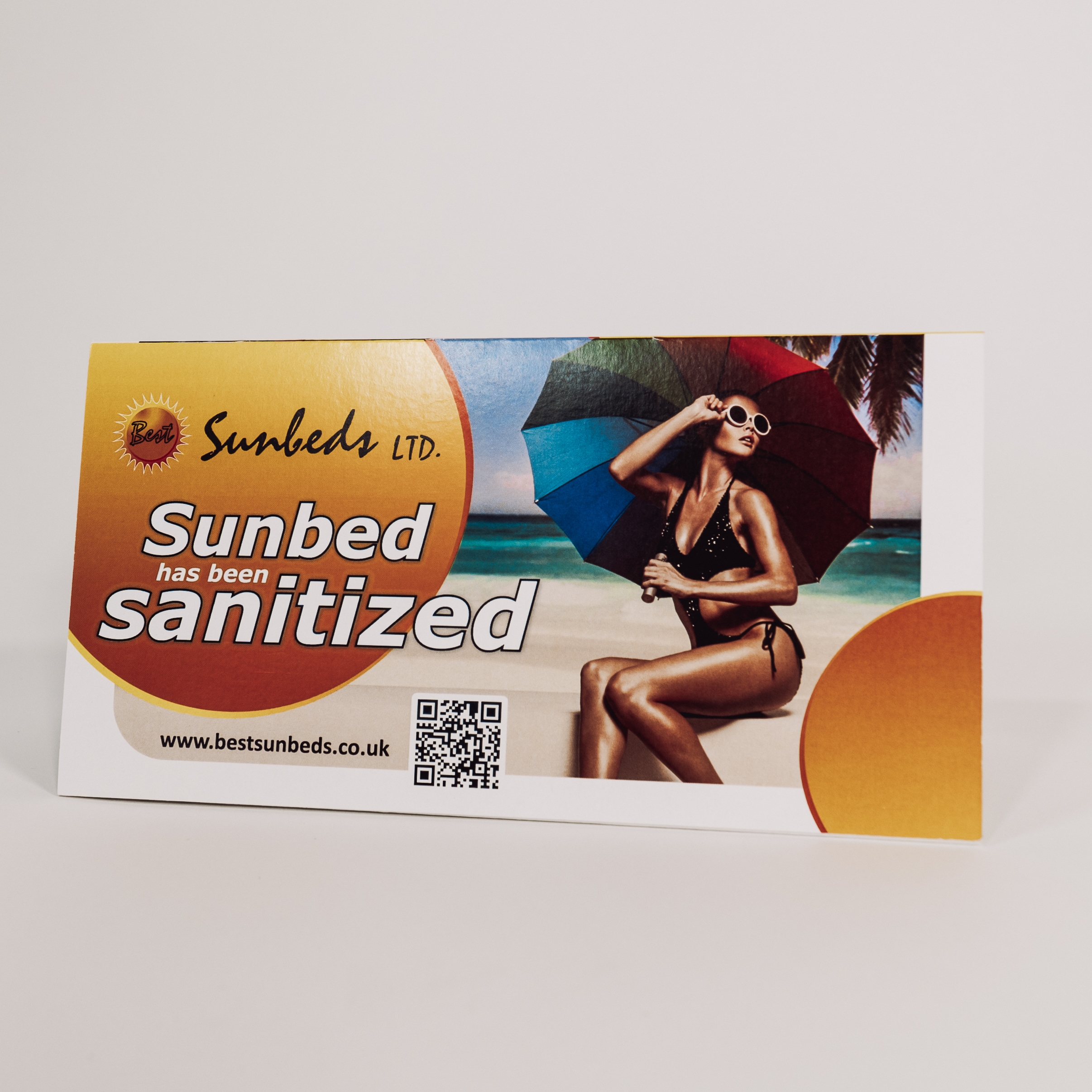 PAPER SIGN ,, THIS SUNBED HAS BEEN SANITIZED “