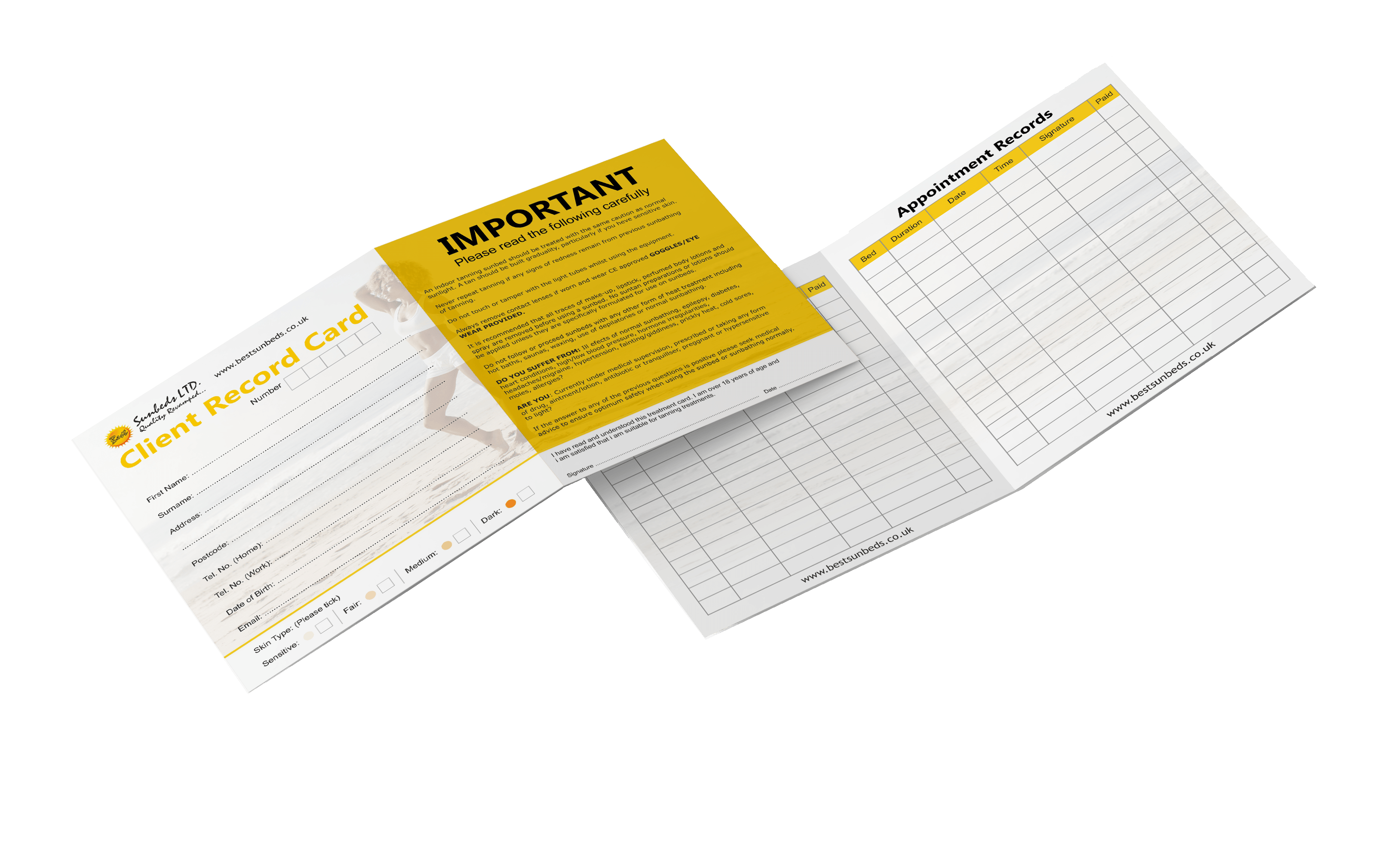 Home » Shop » Sunbed Client Record Consultation Cards – Pack of 100